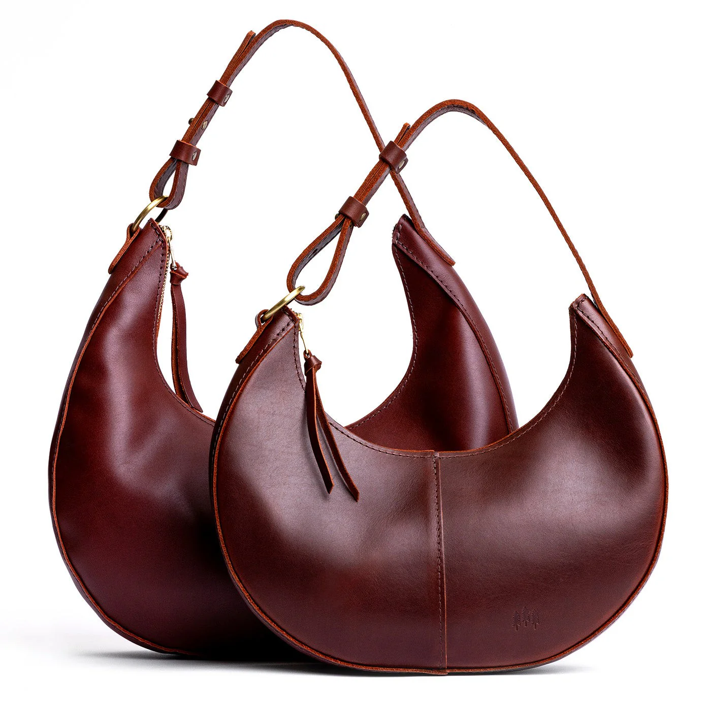 - Elegant details include a Sam Browne adjustable shoulder strap and leather tasseled zipper closure